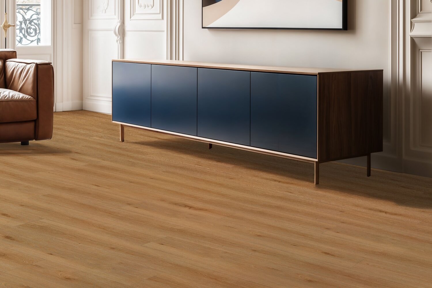 Celkový komfort podlahy zvyšuje dvojitá akustická vrstva pre príjemnú chôdzu, znížený hluk v miestnosti (až -79 dB) a jednoduché rezanie lamiel počas inštalácie. ​Integrovaná akustická podložka prispieva k tlmeniu kročajového hluku (-19 dB).