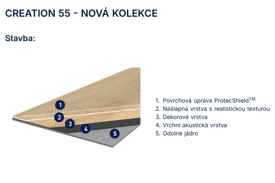 Kolekcia Creation 55 je dostupná aj vo verzii plávajúcej podlahy pre potreby voľnej pokládky bez lepenia.