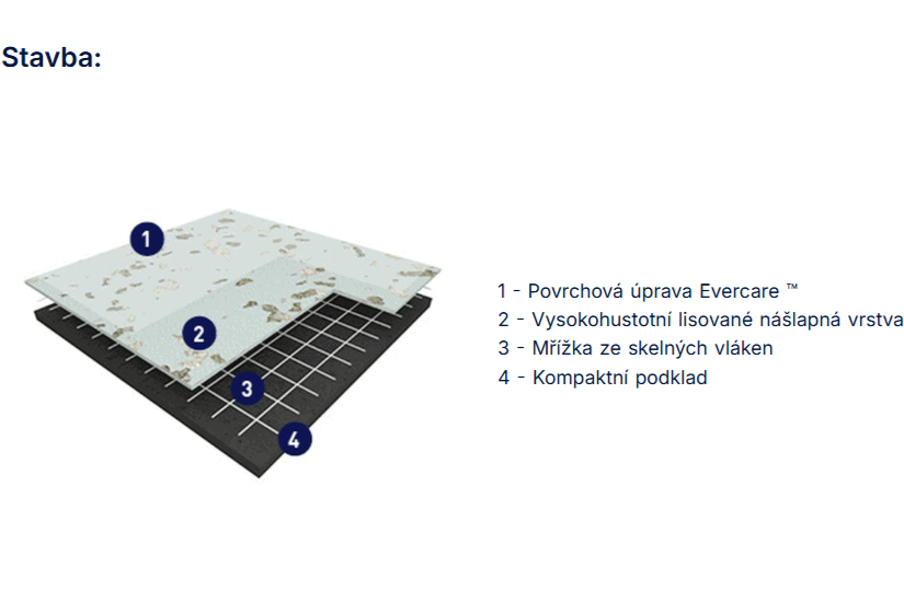 Vinylová podlaha Gerflor v celkovej hrúbke 2 mm poskytuje príjemný pocit pri chôdzi, tlmí hluk a zvyšuje akustický komfort v miestnosti. Je protišmyková (R10), antibakteriálna a vhodná aj do priestorov so zvýšenými hygienickými požiadavkami, ako sú zdravotnícke zariadenia, kancelárie, školy či hotely.