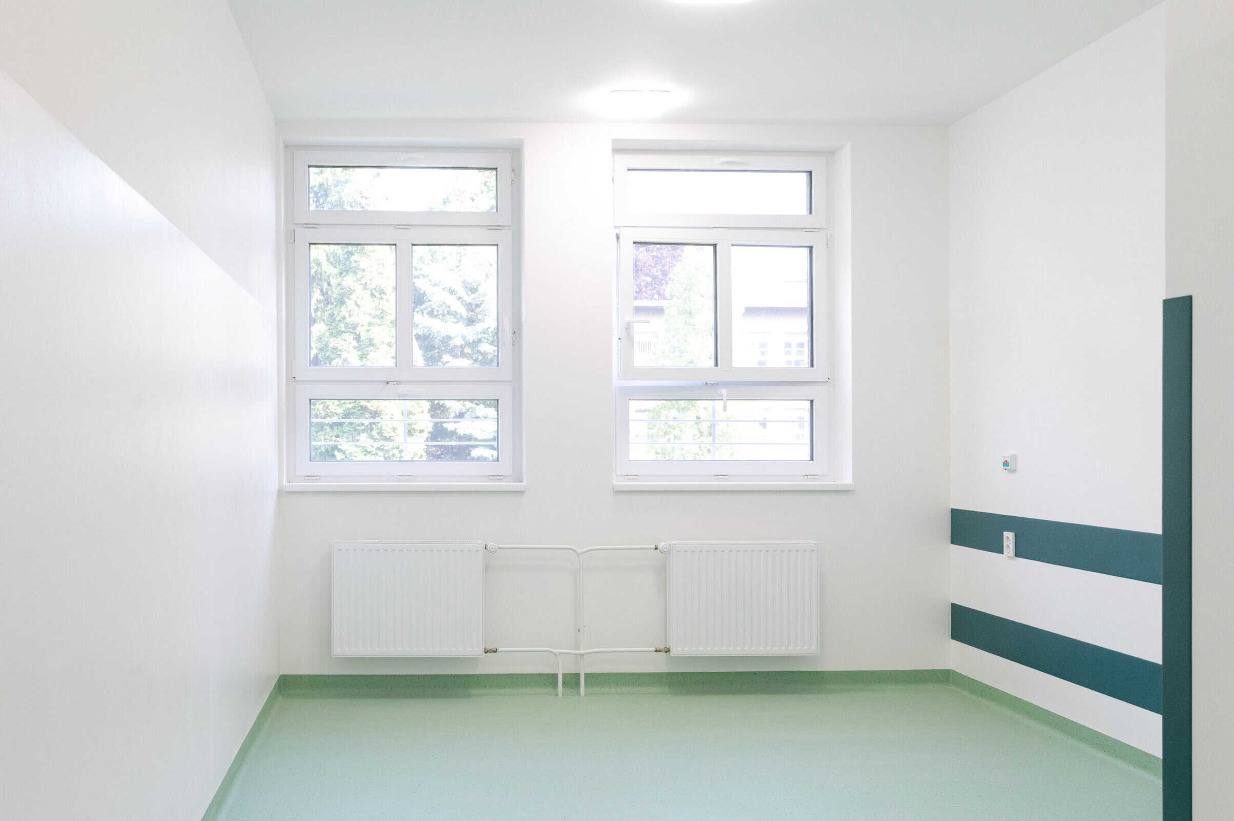 V rámci tohto významného projektu sme sa podieľali na dodaní a inštalácii nových podlahových krytín na troch podlažiach juhovýchodného krídla budovy psychiatrie s výmerou takmer 1700 m². Použitá bola kvalitná PVC podlahová krytina Mipolam Planet od renomovaného výrobcu Gerflor, v troch hlavných farebných prevedeniach – zelenej, modrej a žltej, pričom poschodia boli zámerne farebne odlíšené pre jednoduchšiu orientáciu a identifikáciu jednotlivých oddelení.