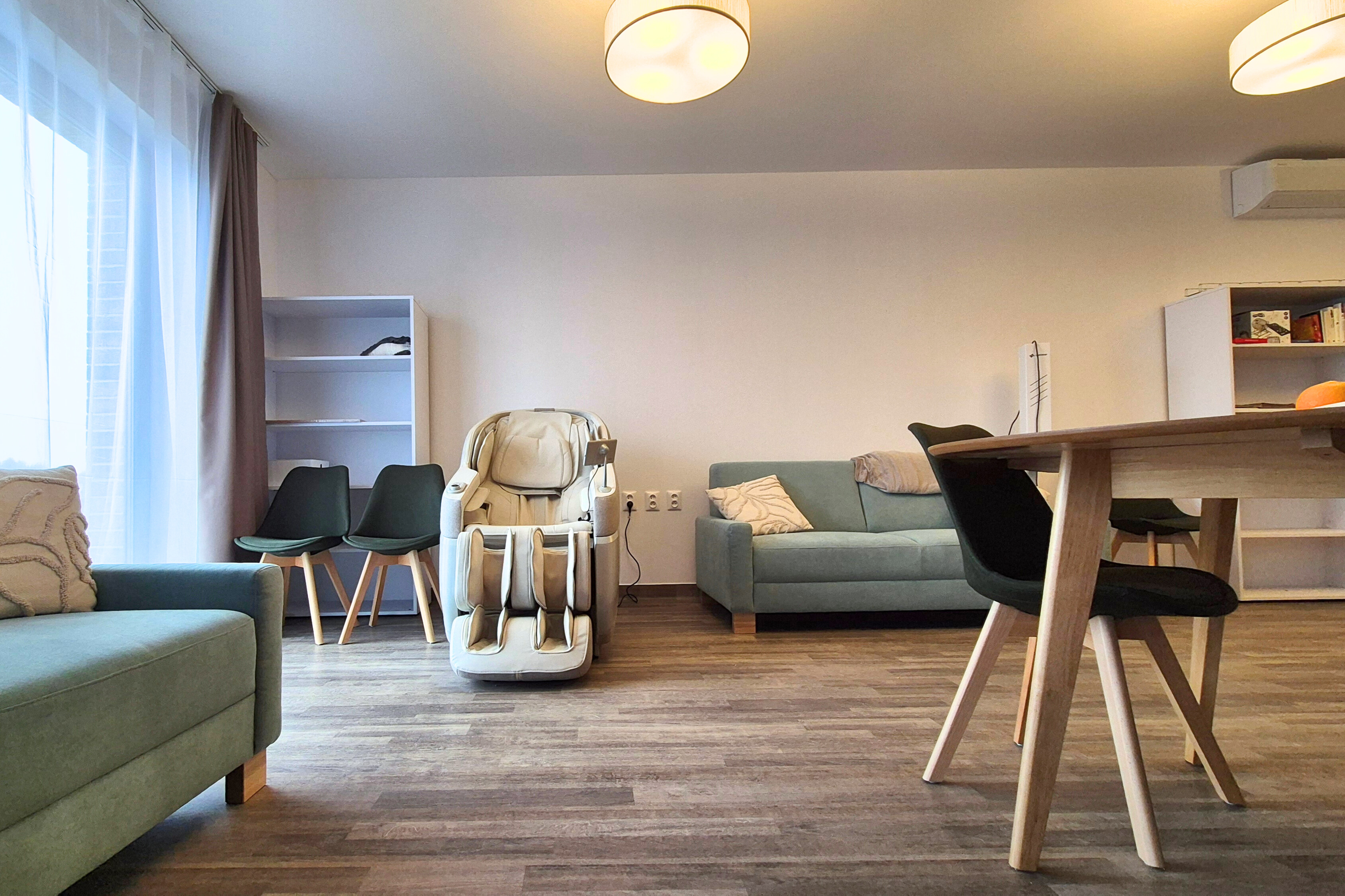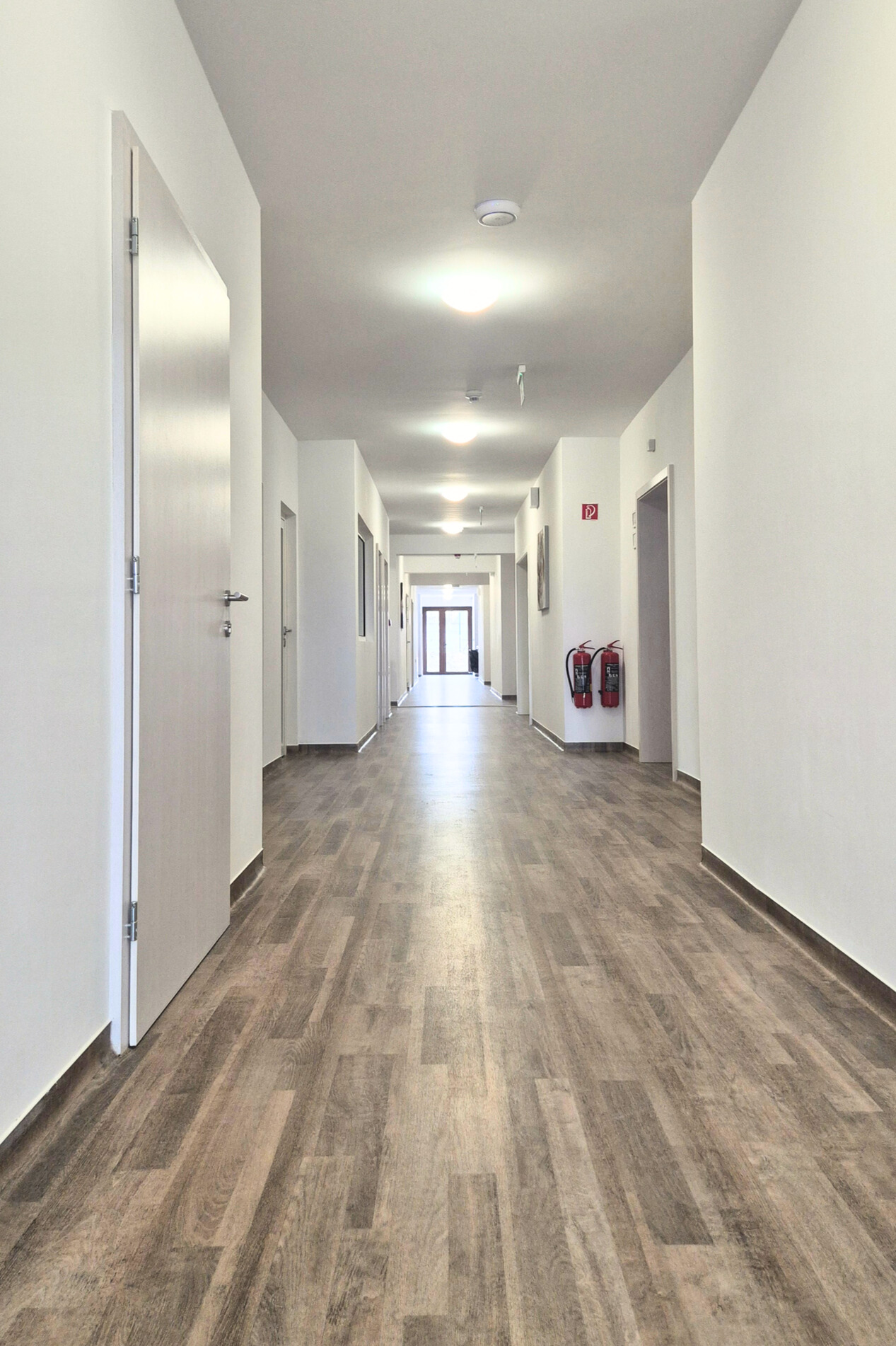 Ako finálny materiál bola zvolená PVC podlaha Novoflor Extra v dekore Wega 2417-4 od českého výrobcu FATRA. Kolekcia Novoflor Extra je určená do komerčných a verejných priestorov s vyššou záťažou. Vyznačuje sa vysokou odolnosťou voči oderu, tvarovou stálosťou, jednoduchou údržbou a veľmi dobrými hygienickými vlastnosťami, čo z nej robí ideálne riešenie pre zdravotnícke zariadenia, školy či komunitné centrá.