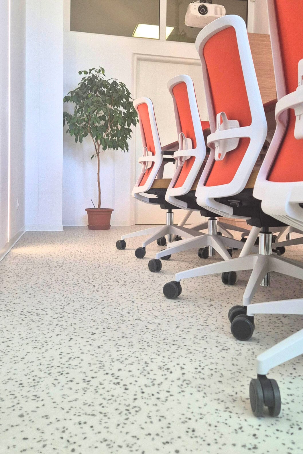 Dôležitým prvkom celej rekonštrukcie bola voľba podlahy. Odolná a nadčasová PVC krytina Gerflor Taralay Impression v terazzo dizajne nielen esteticky oživila priestor, ale zároveň vyniká svojimi úžitkovými vlastnosťami. Povrch podlahy je ošetrený technológiou Protecsol®2, ktorá zabezpečuje vysokú odolnosť voči škvrnám a oderu a zároveň uľahčuje každodennú údržbu bez potreby voskovania či špeciálnej starostlivosti. Vďaka týmto vlastnostiam si podlaha dlhodobo zachováva svoj vzhľad.